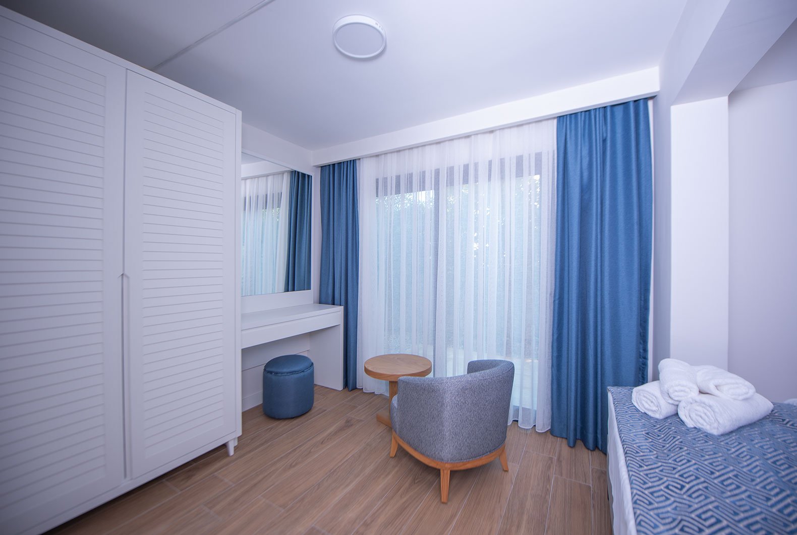 Yalıkavak Odası, modern konforu yalın bir şıklıkla birleştirir. Ferah iç mekân, sade formlar ve doğal renk paletiyle denizle bütünleşen bir yaşam alanı sunar.